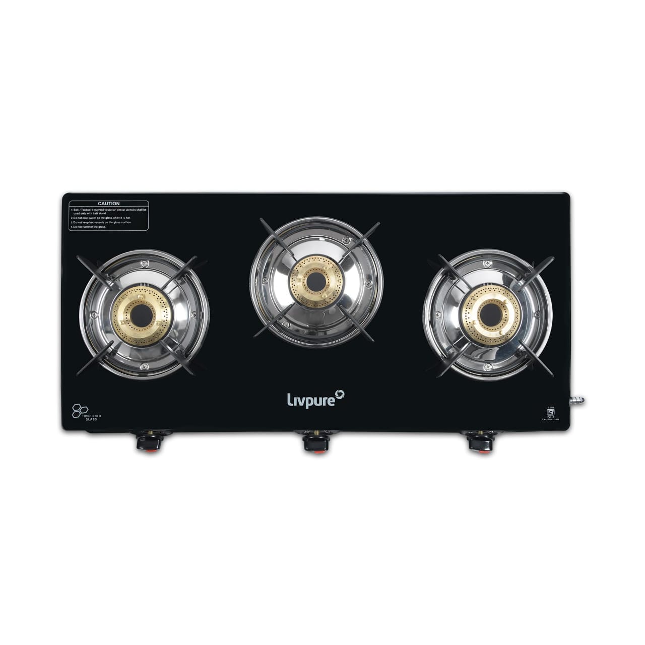 Transform your daily cooking into a smooth and stylish experience with the Livpure Luna 3-Burner Glass Top Gas Stove (LIV-LUNA-3 B).