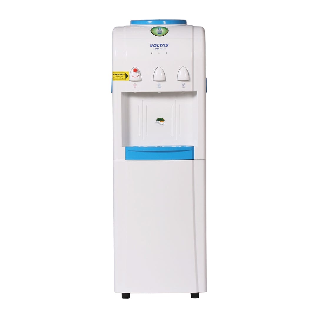 The Voltas Mini Magic Pure-R Water Dispenser is a versatile and energy-efficient appliance designed for modern homes, offices, clinics, and reception areas. It features a robust, floor-mounted design for stability and ease of access. Users can instantly choose from three temperature modes—piping Hot water for instant tea/coffee, Cold water for a refreshing chilled drink, and Normal temperature water for everyday hydration. The appliance is built with a Non-Breakable UV Grade Plastic Body for a long-lasting aesthetic and a rust-free SS304 Stainless Steel Inner Tank for hygienic water storage. The most significant value addition is the Built-in Refrigerator Cabinet (approx. 20 Litres capacity) at the bottom, which serves as a mini-fridge for storing drinks, snacks, or other small items. It includes an energy-efficient compressor, an Eco-Friendly Refrigerant (R-134a), and safety features like a Child Safety Lock on the hot water tap.